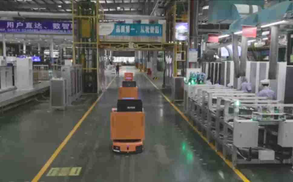为车载冰箱物流配送打造的智能解决方案,,,,包含产中物流通过潜伏举升AMR搬运至线边,,产后成品物流智能仓储,,,流程包含产中物流智能齐套入库,,,线边安灯叫料AMR智能配送至线边,,,成品入库、、、、出库,,,通过无人堆高车机器人,,,,智能仓储管理替代人工作业管理,,,,实现更高存储、、、更高效率、、、更具柔性化的解决方案。。。。